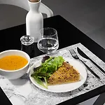 A vegetarian breakfast is available daily from 7:00 till 10:00. Guests are welcome to a lounge bar on site.